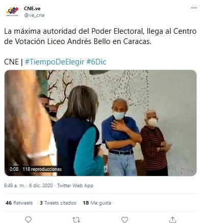 La presidenta del Consejo Nacional Electoral Indira se avocó a su centro de votación, el liceo Andrés Bello en Caracas dónde ejerció su derecho al voto.