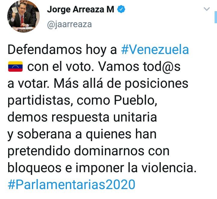 «que pretenden dominarnos», «Defendamos hoy a Venezuela con el voto. Vamos todos a votar», subrayó.