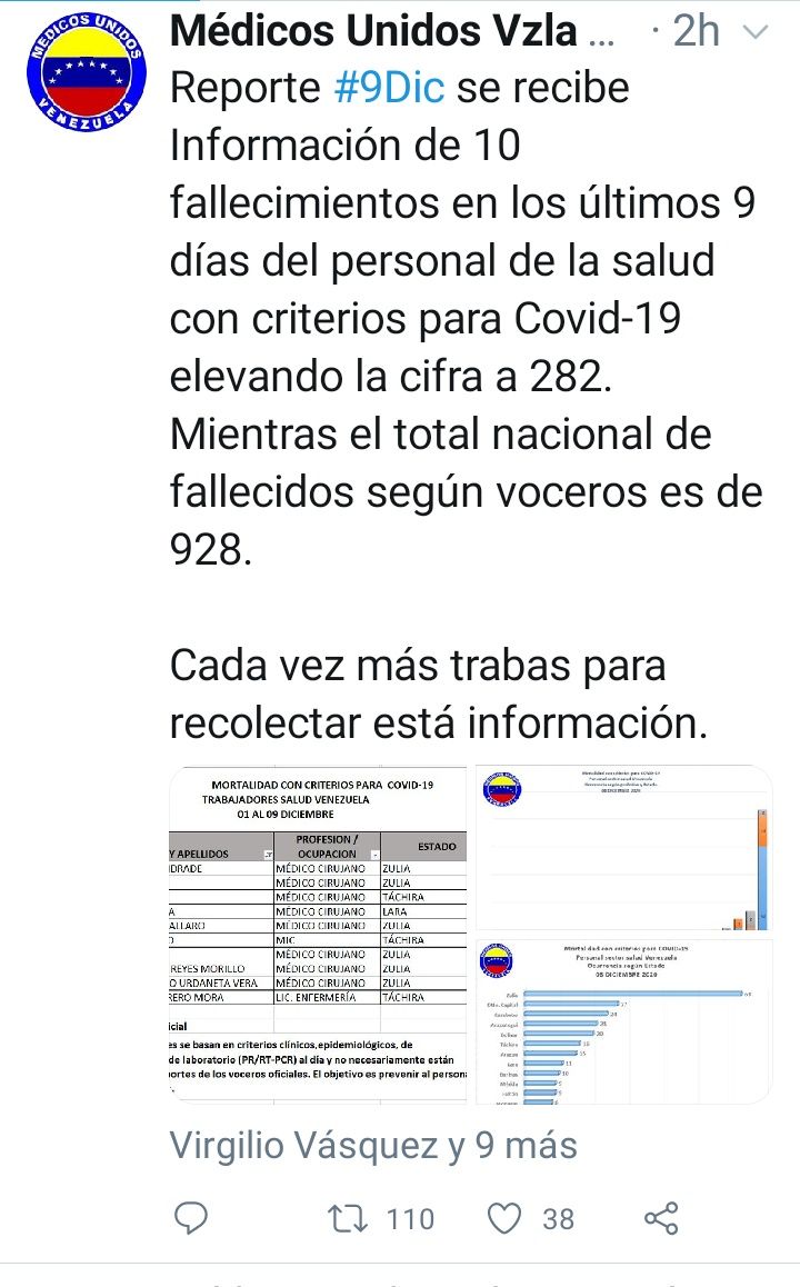En los últimos nueve días, un total de 10 médicos venezolanos han fallecido a causa del coronavirus, según el reporte de la Organización No Gubernamental, (ONG) Médicos Unidos Venezuela.