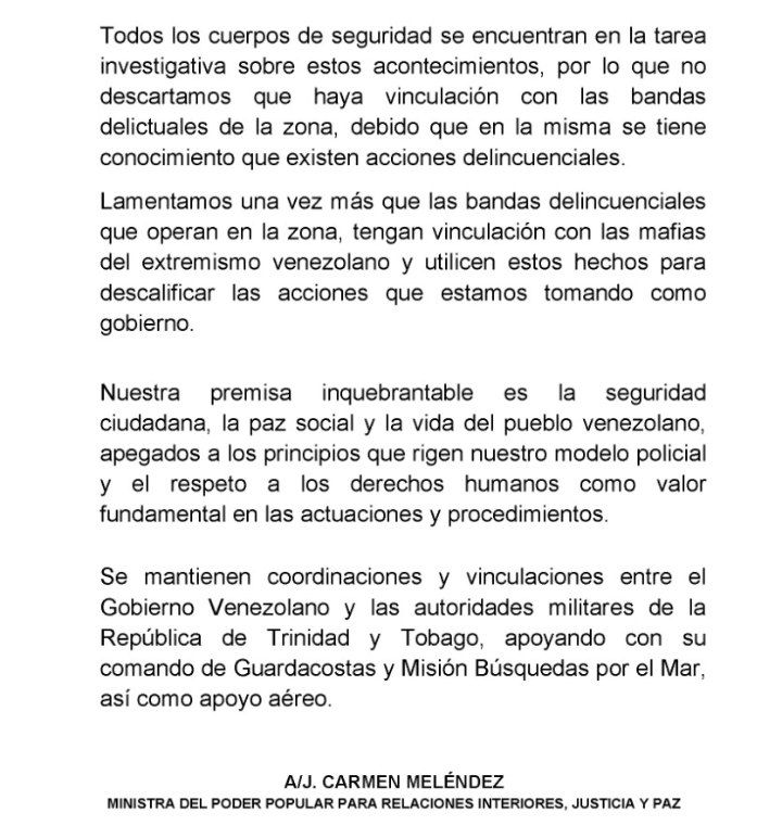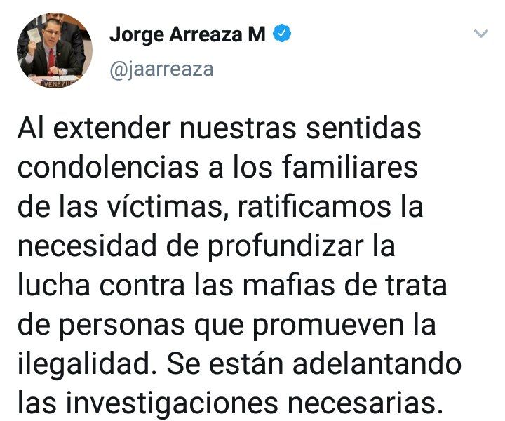 «Al extender nuestras sentidas condolencias a los familiares de las víctimas, ratificamos la necesidad de profundizar la lucha contra las mafias de trata de personas que promueven la ilegalidad. Se están adelantando las investigaciones necesarias»