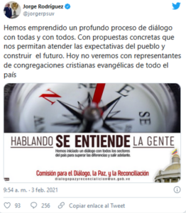 Jorge Rodríguez presidente de la Asamblea Nacional reiteró que se ha emprendido un proceso de diálogo con las partes que hacen vida en el país.