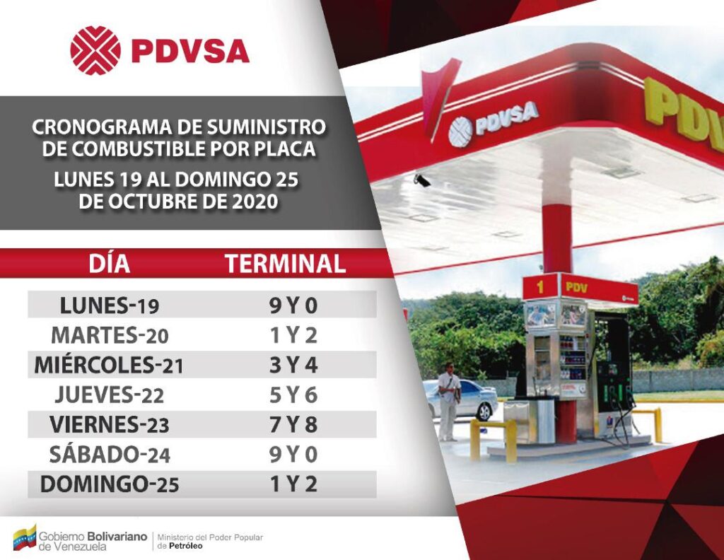Así es el cronograma de distribución de gasolina del lunes 19 de octubre al domingo 25