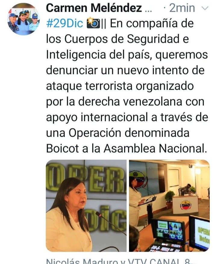 Melández, indicó que la operación boicot estaba prevista entre el 27 de diciembre y el 5 de enero aseveró la ministra.