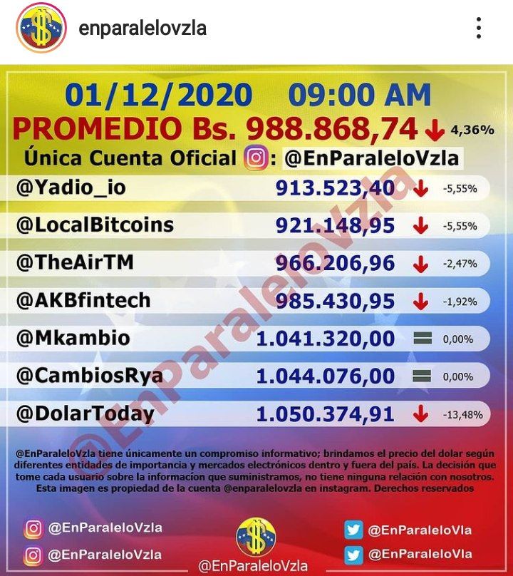 Aunado a esto esos punto porcentuales, van representados en Bs. 45.046,43 según la cuenta de instagram @EnParaleloVzla.