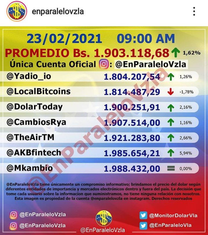 Aunado a esto, los puntos porcentuales se traducen en Bs. 17.835,33 según la cuenta de instagram @EnParaleloVzla.