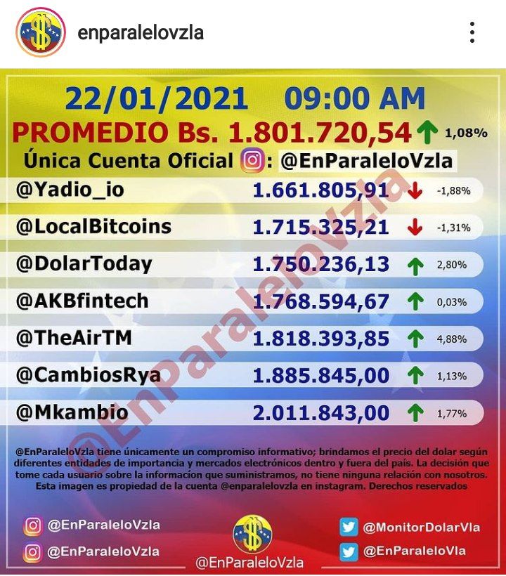 Según la cuenta de monitoreo @EnParaleloVzla los puntos porcentuales se traducen en Bs. 19.186,35 respectivamente.