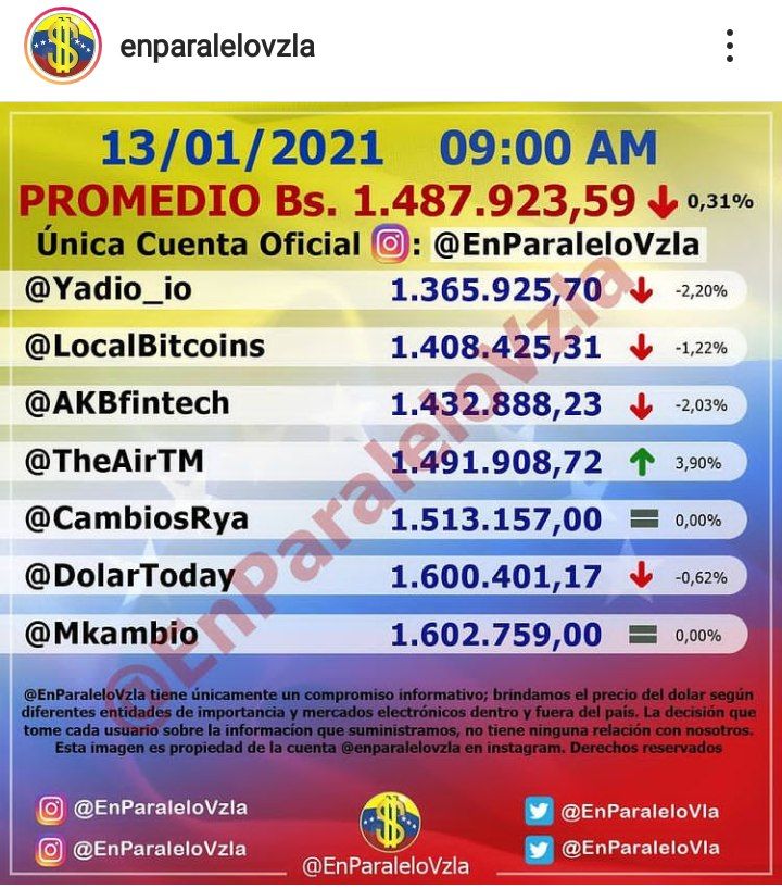 Con respecto a los puntos porcentuales estos tienen un valor en Bs. 4.554,21 según la cuenta de instagram @EnParaleloVzla.
