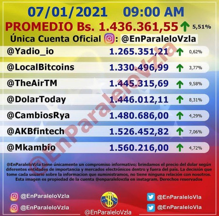 La divisa extranjera se registró en alza de 5,51 puntos porcentuales con Bs. 1.436.361,55 este jueves 7 de enero respectivamente.