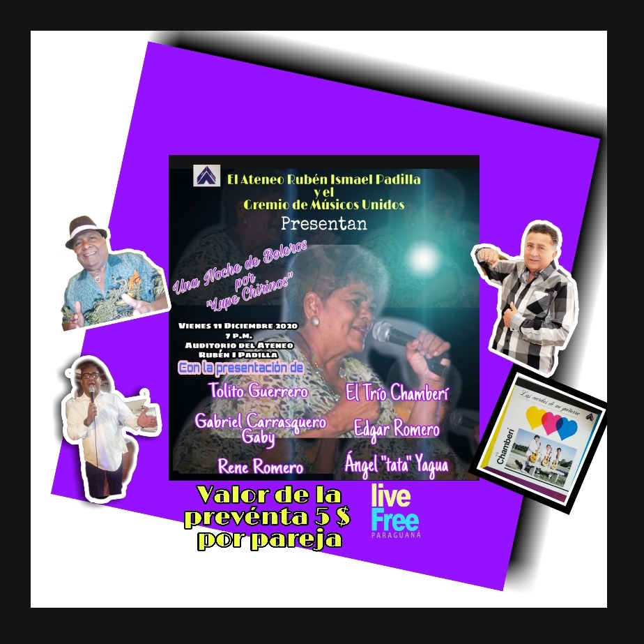 Dicha actividad titulada “Una noche de Boleros por Lupe Chirinos” iniciará a las 7:00PM.