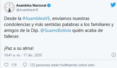 A través de la cuenta Twitter de la diputada, el Parlamento expresó su pérdida y envió sus condolencias a los familiares.