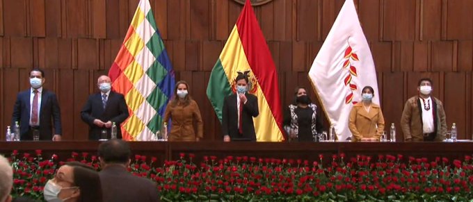 Al evento asistieron la presidenta del Senada Eva Copa y el presidente de la Cámara de Diputados Sergio Choque, así como los jefes de las misiones internacionales.