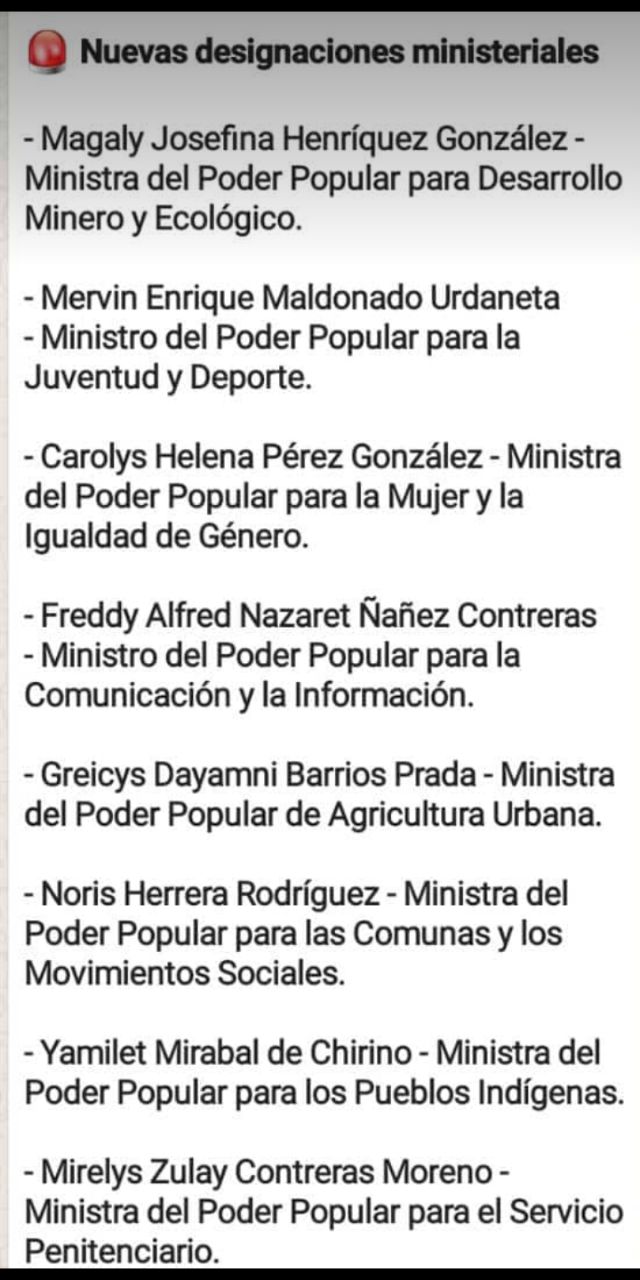 Las nuevas designaciones ministeriales se dieron de la siguiente manera: