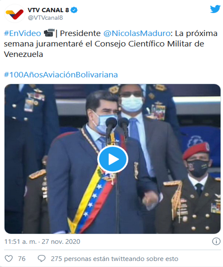 De igual forma, el jefe de estado anunció que el Consejo Científico Militar de Venezuela será juramentado.