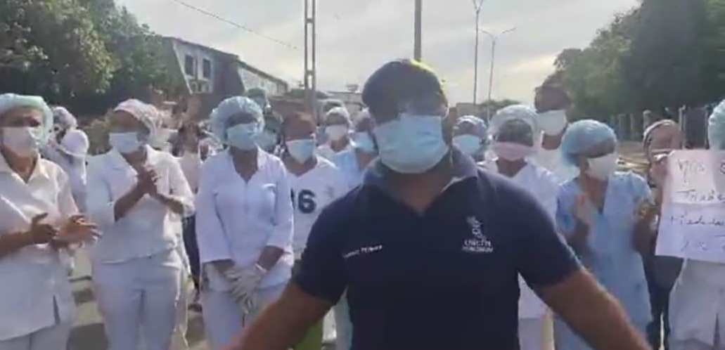 Esta protesta se da un día después de que autoridades regionales de salud informaran de la entrega de kits al personal de hospital Van Grieken de Coro.