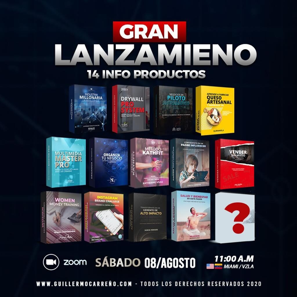 En tal sentido, este sábado 8 de agosto a las 11 de la mañana 13 profesionales en vivo a través de Zoom, lanzarán catorce nuevos info-productos bajo el liderazgo de Guillermo Carreño, profesional en negocios e innovación tras años de experiencia sigue incentivando a los emprendedores que bajo la metodología C.E.R. (Conocimiento, Experiencia y Resultados) logren alcanzar las metas propuestas.