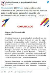 Las operaciones comerciales desde y hacia Porlamar-Maiquetía, Porlamar, Valencia, Porlamar-Maracaibo y Puerto Ordaz-Canaima han sido autorizadas por el Instituto Nacional de Aeronáutica Civil INAC.