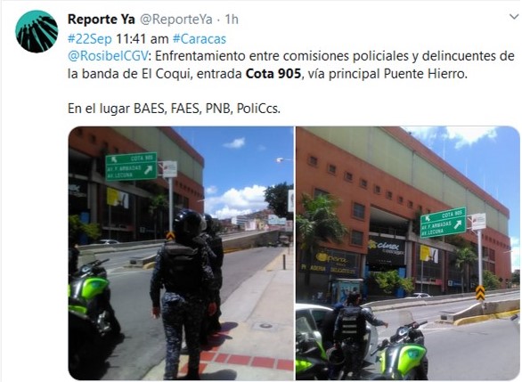 A través de las redes sociales se ha comenzado a difundir información con respecto a presuntos enfrentamientos entre policía y delincuentes en la entrada de la Cota905 de Caracas.