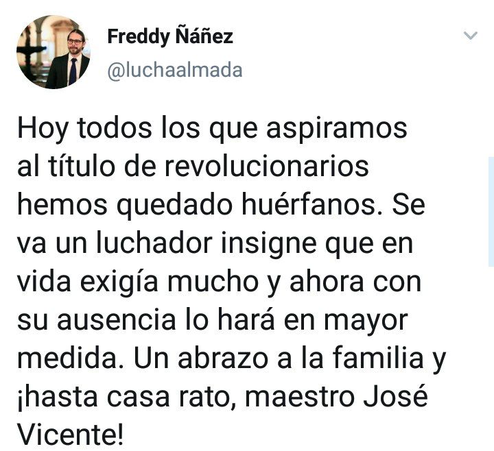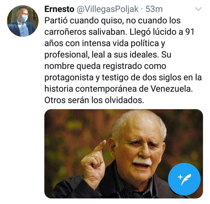 Ernesto Villegas también se manifestó tras conocer la noticia, destacando su atestiguamiento de dos siglos de la historia contemporánea de Venezuela.
