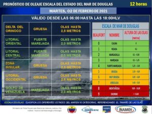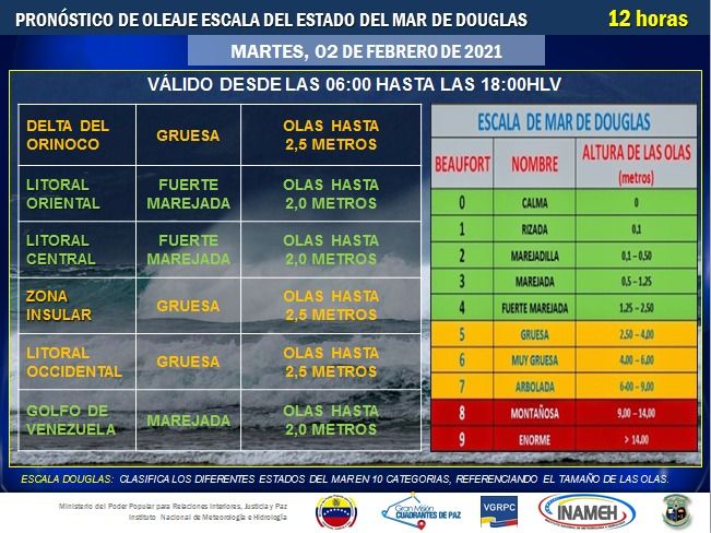 Con respecto al oleaje, se espera un oleaje de 2 metros de altura en lazonas de litorales Central y Oriental además de 2,5 metros de altura en el litoral Occidental y la Zona Insular.