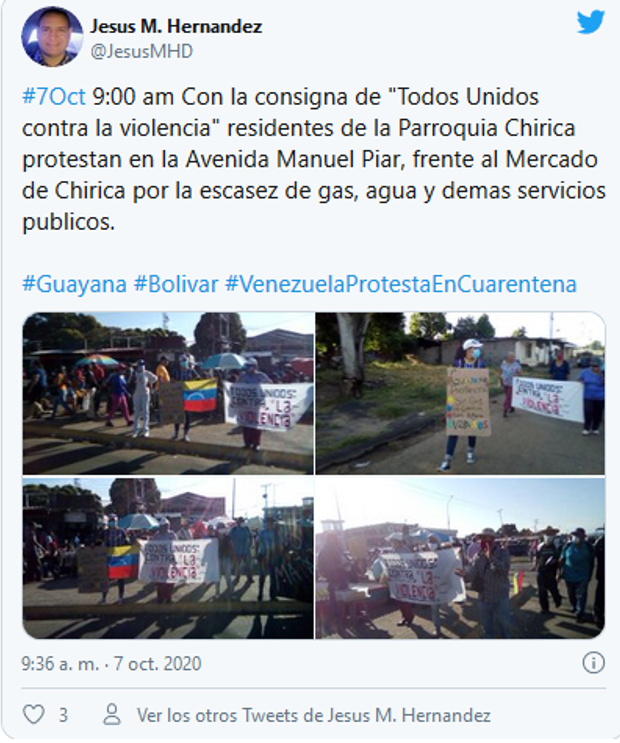 La falta de agua y electricidad, son algunas de las razones que impulsó a este grupo de personas a manifestar demandando soluciones. Los manifestantes se avocaron principalmente en la Avenida Manuel Piar frente al Mercado.