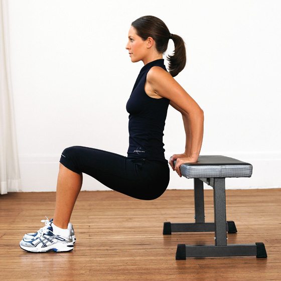 Un ejercicio sencillo pero efectivo para nuestros tríceps son los dips o fondos, para los que necesitarás una silla o una mesa baja. Nos colocamos de espaldas a la silla y apoyamos las manos en el asiento, de modo que los dedos de las manos miren hacia nosotros. Desde ahí, flexionamos los codos para bajar con la espalda erguida, y empujamos la silla hacia abajo para volver a subir.