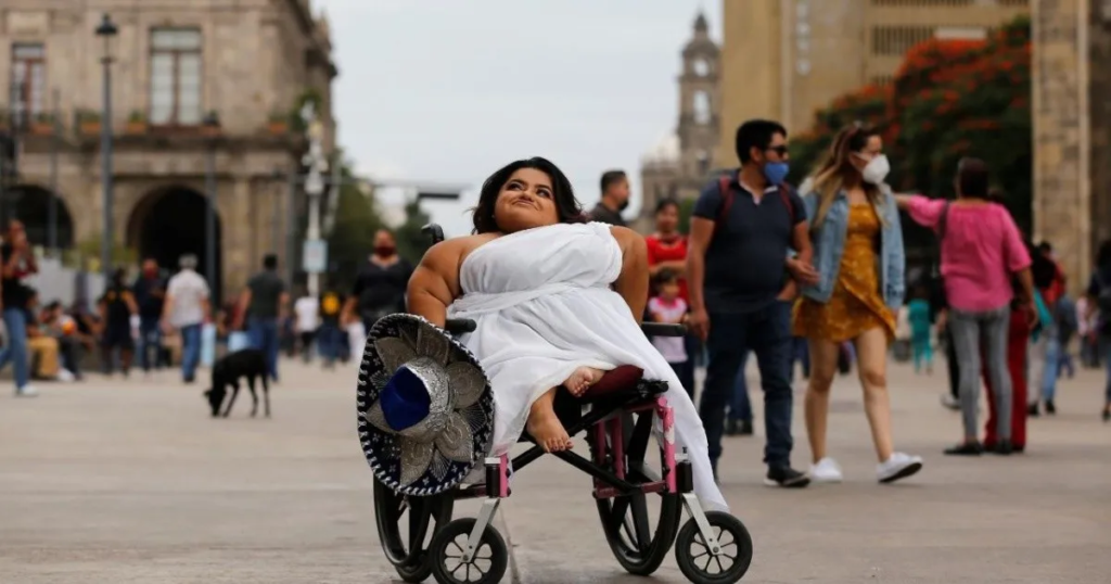 La joven de 34 años vive desde pequeña en la ciudad mexicana de Guadalajara (Jalisco), donde llegó desde su natal Culiacán (Sinaloa). Desde sus primeros años de vida permanece todo el día en silla de ruedas pues el tamaño de sus piernas y la fragilidad de sus huesos le impiden mantenerse en pie durante mucho tiempo.