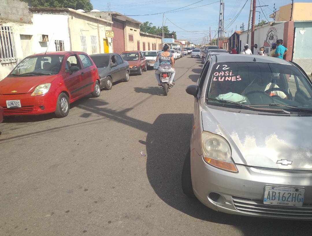 Ciudadanos que amanecieron haciendo su cola en la estación de servicio El Oasis, única estación subsidiada para Coro para este 5 de octubre, reportan lentitud en el abastecimiento de combustible.
