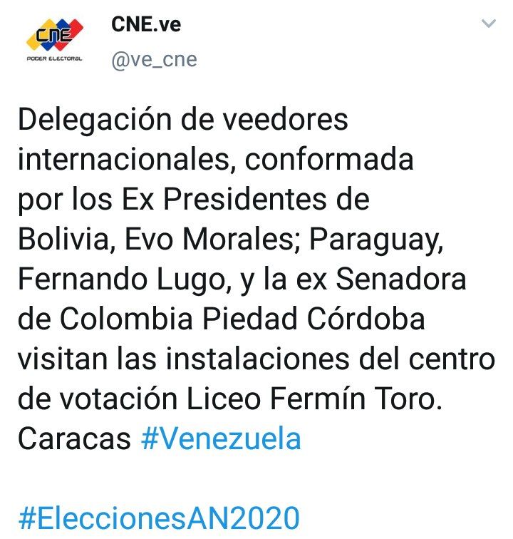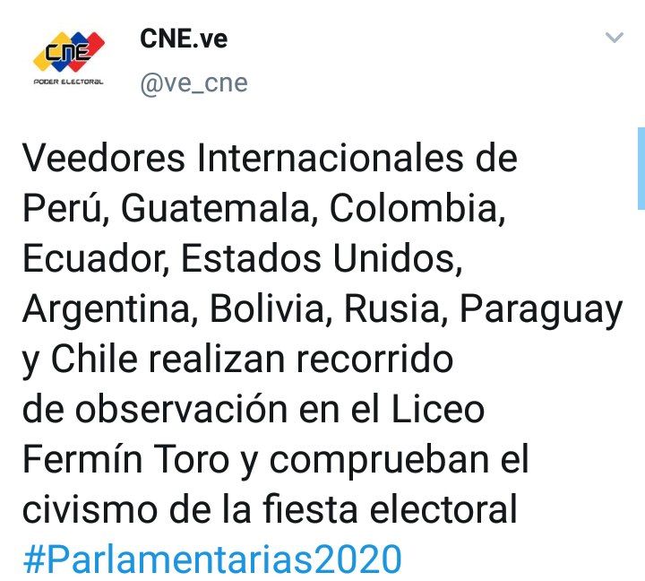 A través de la cuenta Twitter del Consejo Nacional Electoral CNE, se pudo conocer que los veedores internacionales han estado en el proceso de recorrido en todos los centros electorales para certidficar como se va desarrollando el proceso.